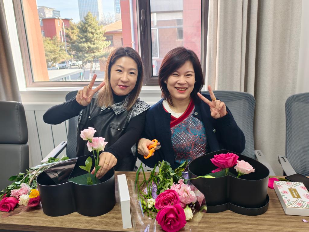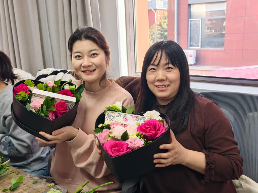 最后,全体女员工手持插花作品合影留念,定格春日美好瞬间。愿所有女性如花绽放,永远温暖芬芳。